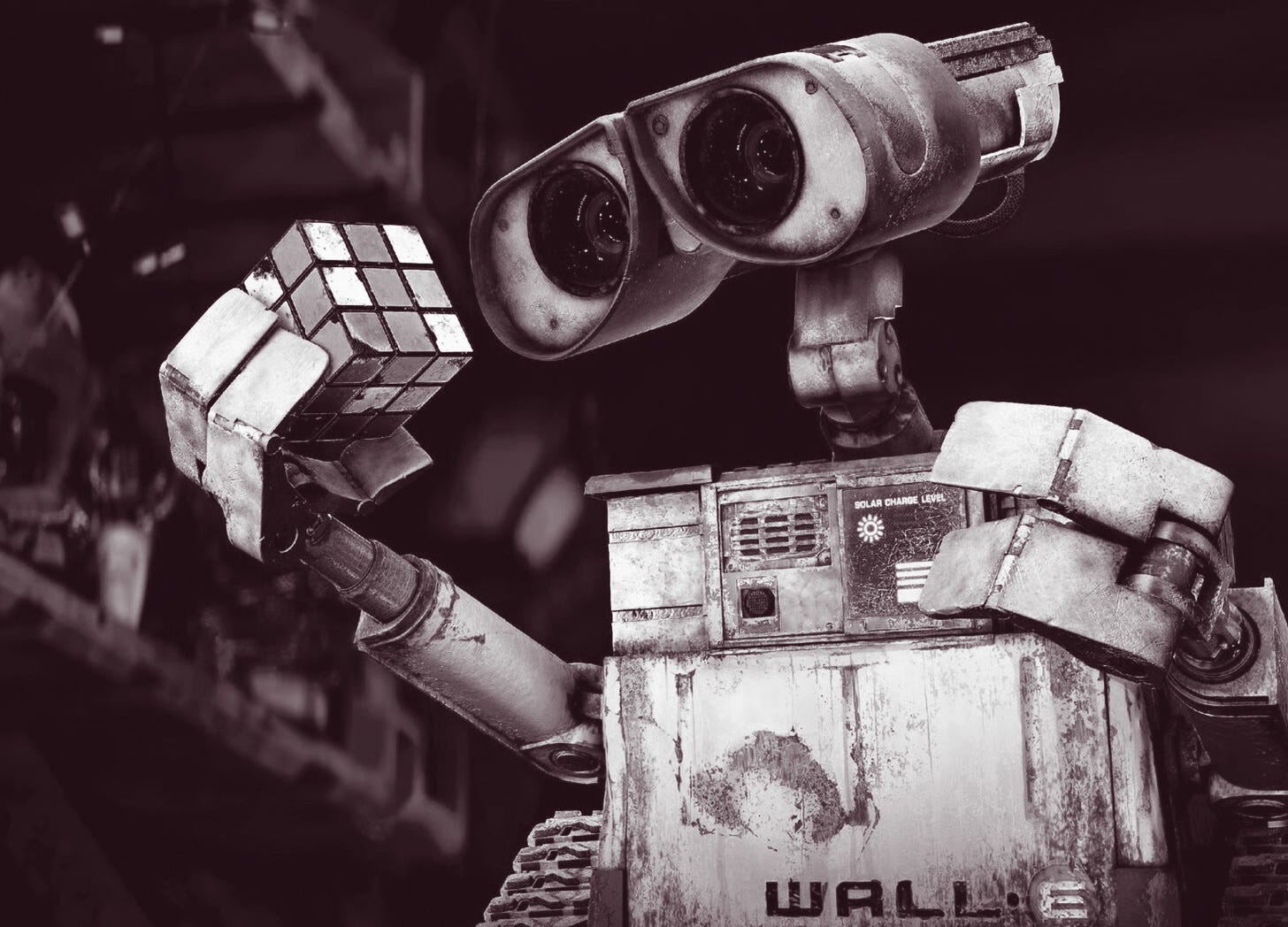 Inside his garage, WALL·E unpacks what he has gathered: the useful, the unusual, the things that delight him—spare parts, a spork, a lighter. He places a find (another rubber duck!) in its bin, with the collector’s satisfaction of making a quality addition to the set. Still, there is longing. He bangs the dirt from his lunchbox and looks up at the stars. Despite the gulf of time between them, he wants what so many before him have wanted: a companion. Someone like him.